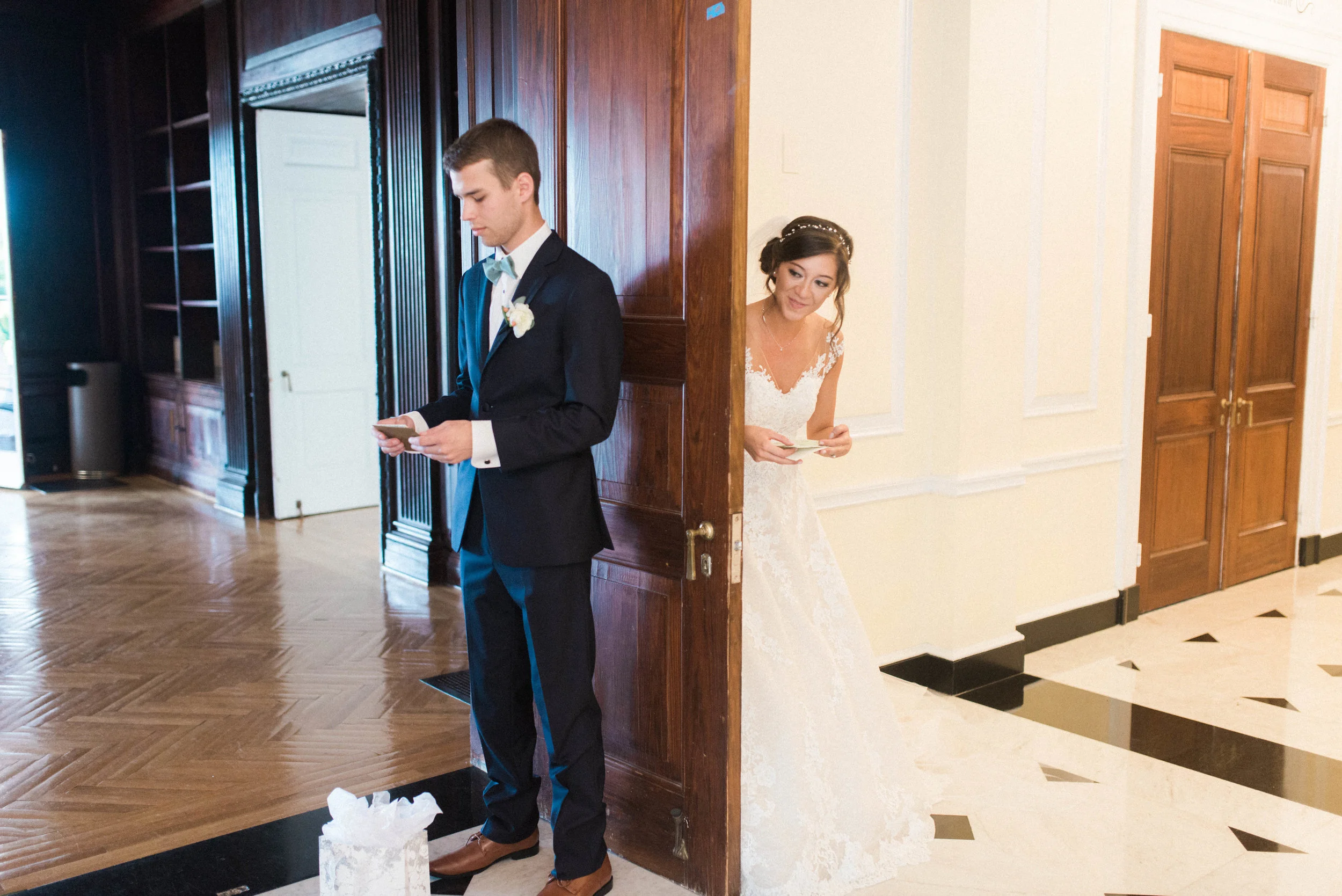 There were so many sweet moments in Natalie and Samuel's wedding it was hard to fit them all in this post! The couple decided on, instead of a first look, to do a letter reading with only a doorway separating them. That way they could still hold hands but not see each other until the ceremony, so precious! Samuel also serenaded Natalie with a sweet song and is guitar, it can't get more adorable than that! Not to mention all of this took place at the gorgeous Oxon Hill Manor and was captured beautifully by Ali McLaughlin Photography! Take a look!